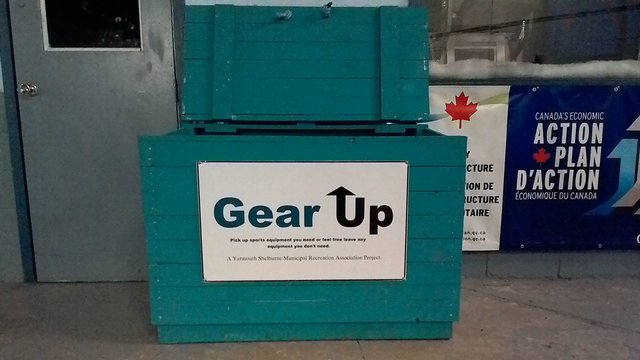 Looking for sports or recreation equipment? We have a selection of new and used equipment for all ages and it’s FREE! Have equipment to donate? Give a second life to your unused or gently used equipment. Donations can be dropped off at the Recreation Office (136 Hammond St) or in the Gear Up bin at the Shelburne County Arena (see pic below). Equipment can also be left in or picked up from the “Gear Up” bin located in the Shelburne County Arena. For inquiries call 902-875-3544 ext 229